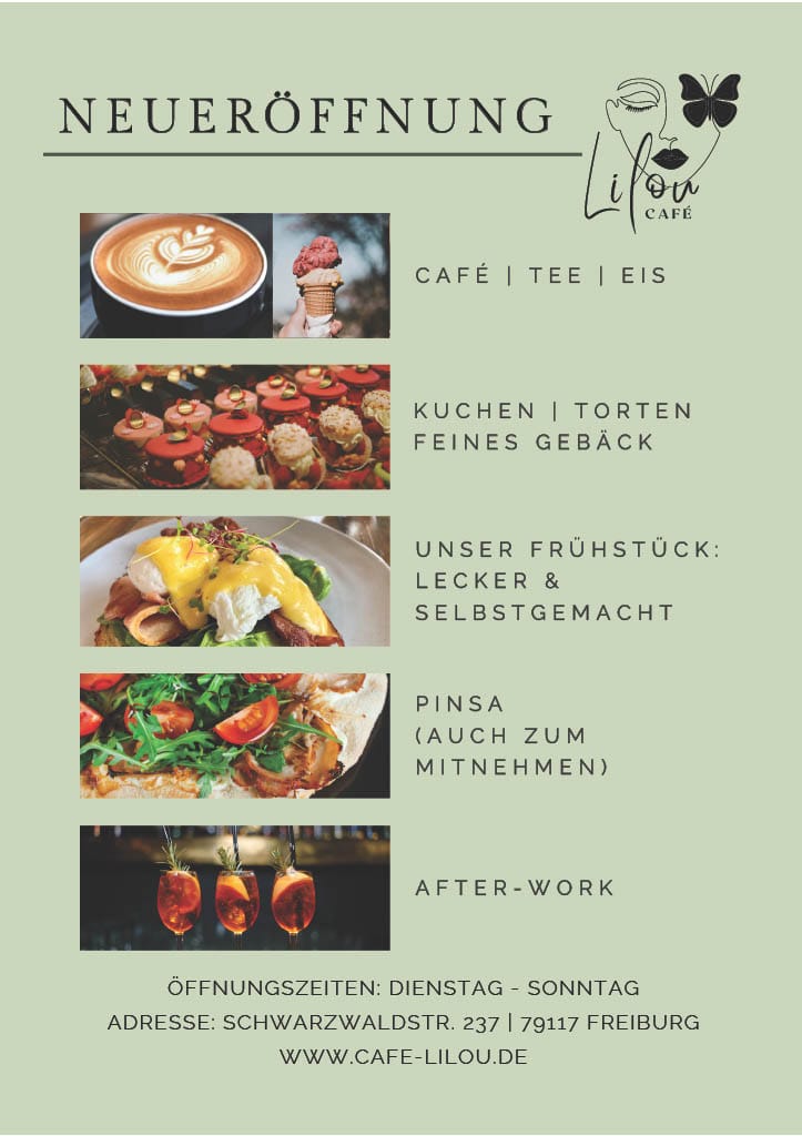 Welcome to Café Lilou, a delightful gem nestled in Freiburg im Breisgau's Ebnet district. This charming café offers a menu designed to please every palate, showcasing both warm-hearted service and a cozy atmosphere. Guests rave about the scrumptious breakfast options, including gluten-free delights like the exquisite goat cheese “Stulle” crafted on perfectly toasted bread.